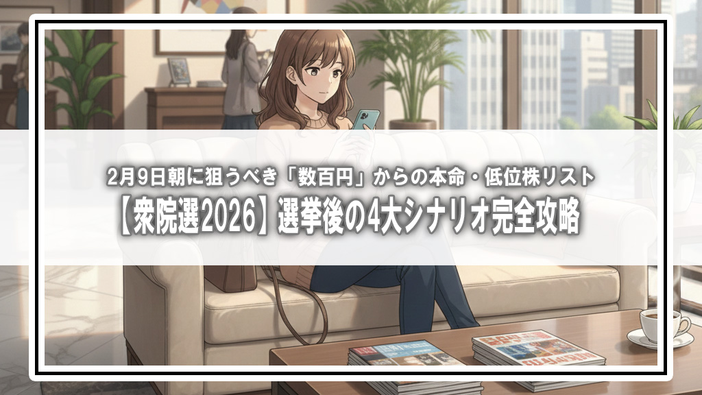 今回は、選挙後の議席数に応じた4つのシナリオと、翌2月9日(月)の朝から狙うべき「数百円台で買えるお宝・低位株」を含めた実践的な投資戦略を徹底解説します。